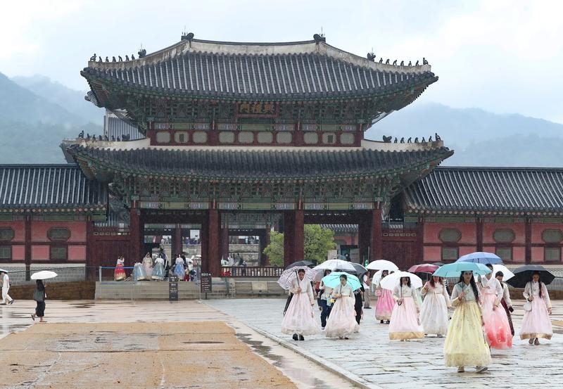 8月6日,游客在韩国首尔景福宫参观。 新华社记者 姚琪琳 摄