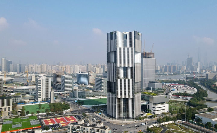 这是位于上海浦东新区世博园区的新开发银行总部大楼(无人机照片)。新华社记者 方喆摄