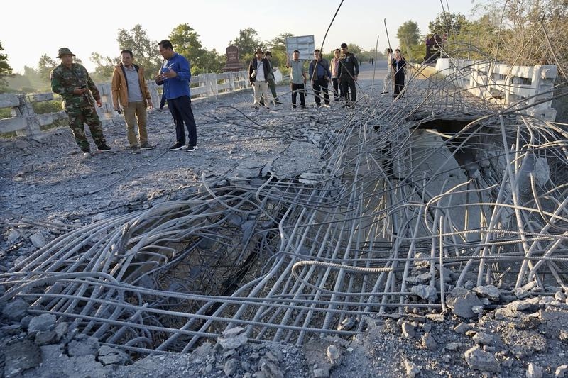 这是2025年12月20日在柬埔寨奥多棉吉省与暹粒省交界处拍摄的被轰炸的桥梁。 新华社/柬新社