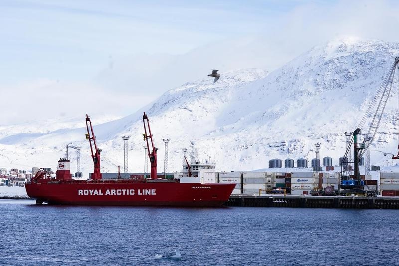 2025年3月20日,货轮停靠在丹麦自治领地格陵兰岛努克港。新华社记者 彭子洋 摄