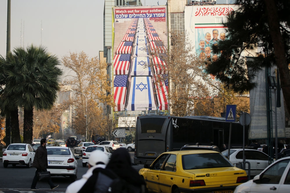 这是1月6日在伊朗首都德黑兰街头拍摄的反对美国和以色列的宣传海报。新华社发