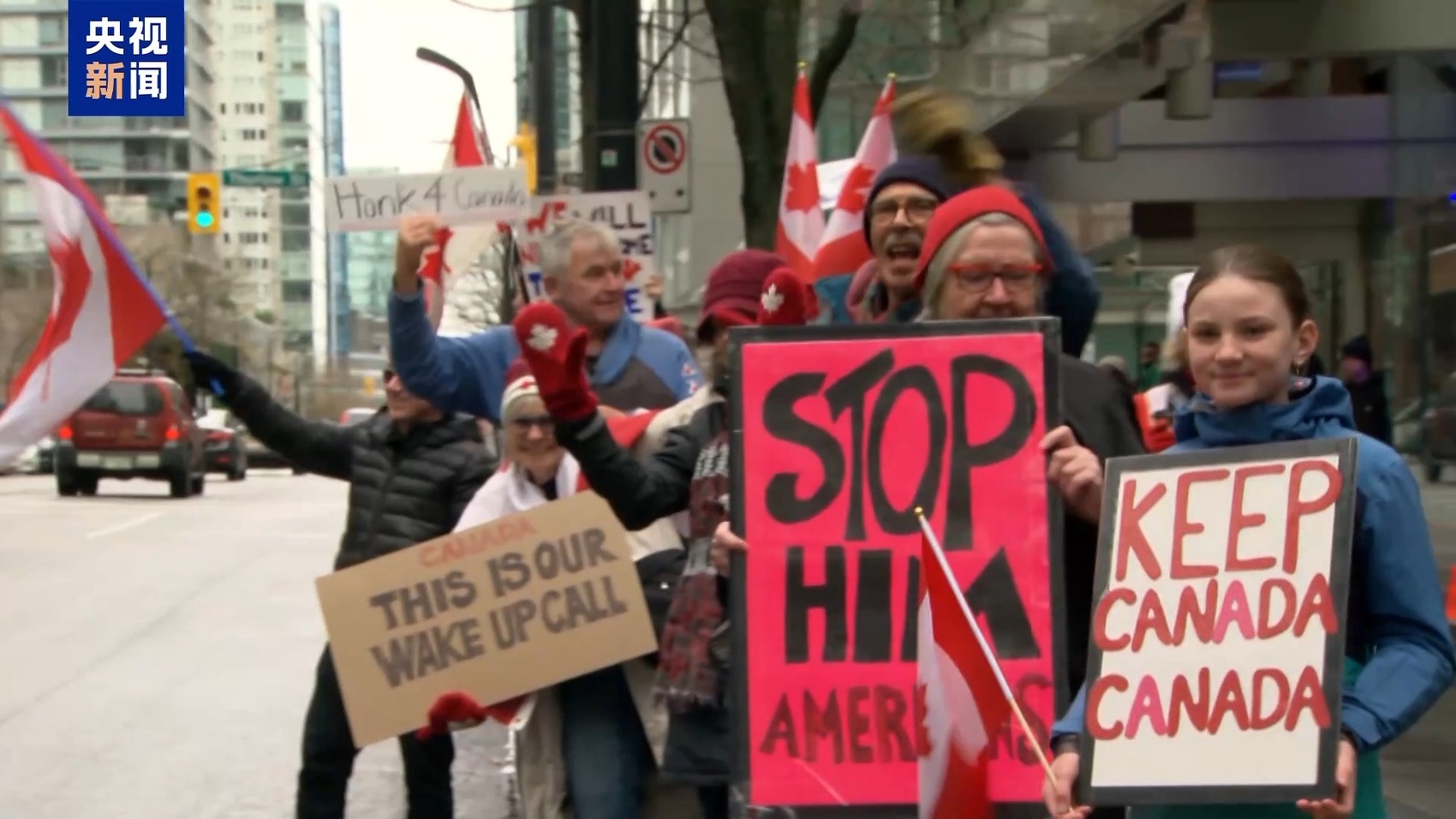 2025年2月,加拿大多地爆发针对美国的抗议活动,民众聚集在美国使领馆前,抗议美国的关税政策和对加拿大主权的威胁。