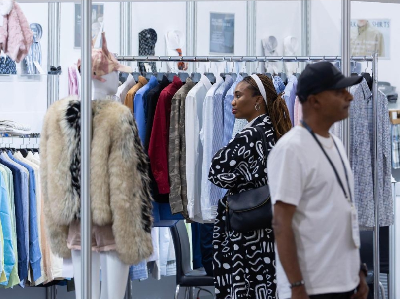 2025年9月29日,在加拿大安大略省米西索加举办的加拿大服装纺织品采购展上,与会者参观一处中国企业展位。新华社发(邹峥摄)