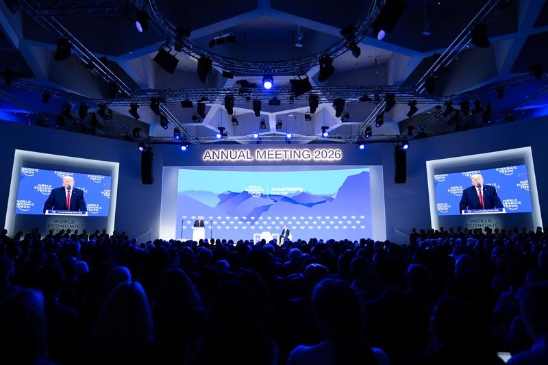 1月21日,美国总统特朗普在瑞士达沃斯举行的世界经济论坛2026年年会发表演讲。新华社记者 连漪 摄