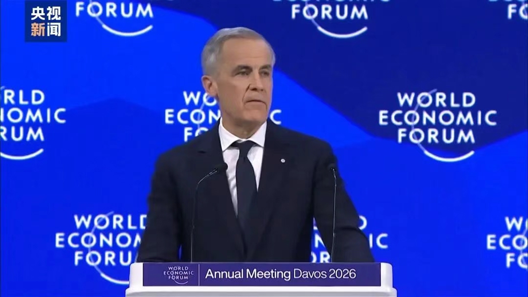 卡尼在世界经济论坛2026年年会上讲话。