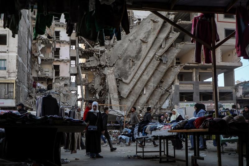 这是1月15日在加沙城一处集市拍摄的往来人群。新华社发(里泽克·阿卜杜勒贾瓦德摄)