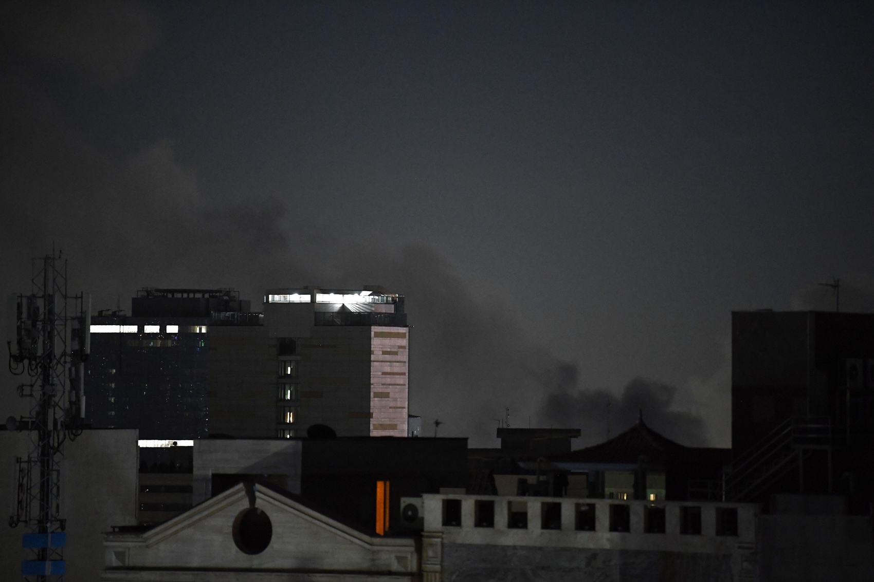 3月1日晚在伊朗首都德黑兰市区拍摄到浓烟。图据新华社