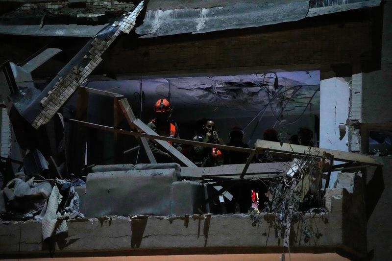 3月18日,在以色列拉马特干,以安全部队在被导弹击中的现场工作。 新华社/美联