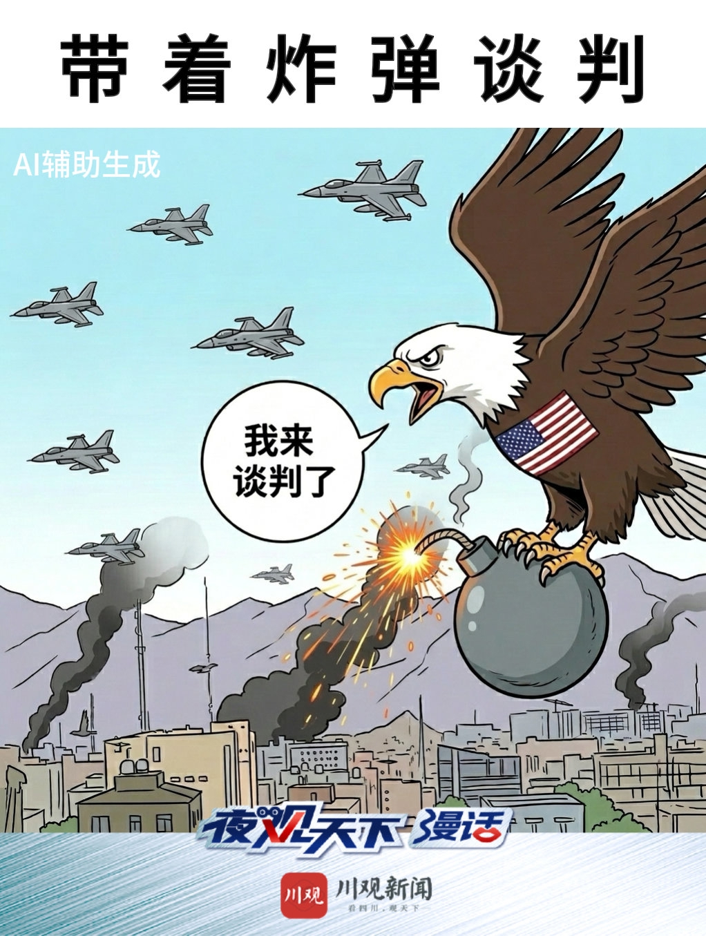 特朗普的一名顾问说:“特朗普一边伸手准备谈判,一边握拳,随时准备打你的脸。”美国国防部长赫格塞思直接表示,“我们带着炸弹谈判。”(新华社)