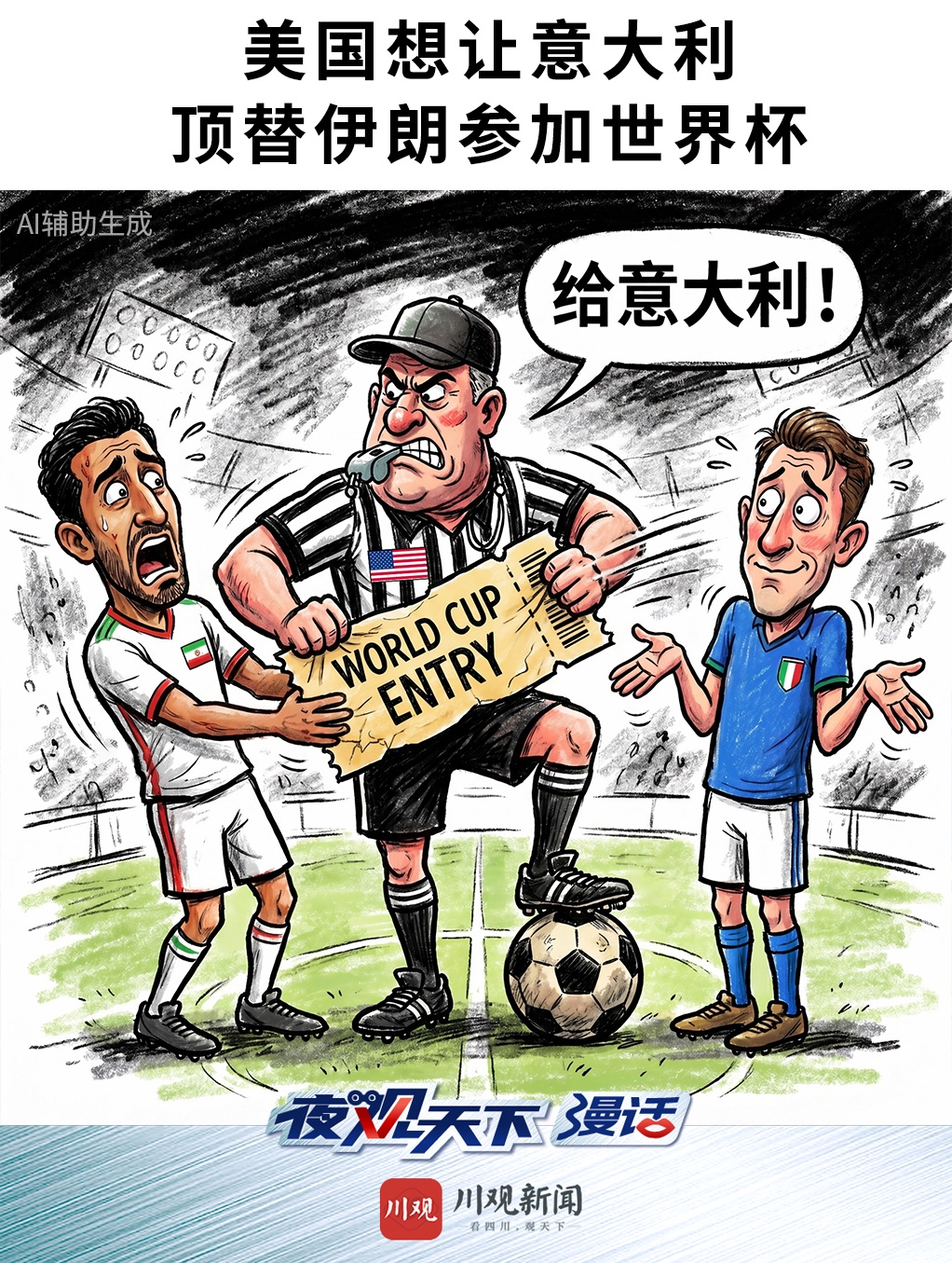 美国想让意大利顶替伊朗参加世界杯丨夜观天下·漫话