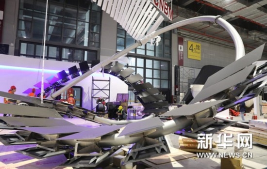 2019年10月30日,在国家会展中心(上海),工作人员在一处企业展台内施工。新华社记者方喆摄