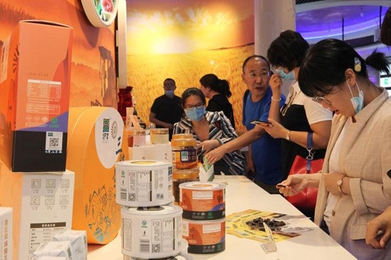 巴彦淖尔“天赋河套”总部基地展示着龙头企业生产的绿色有机农畜产品。
