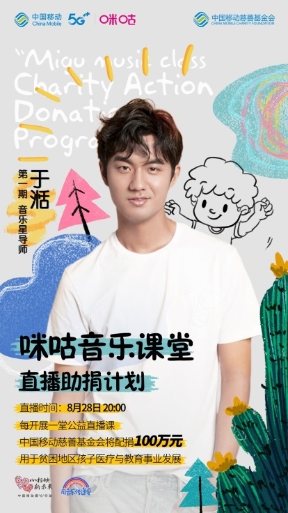 原来,这是由中国移动慈善基金会、中国移动咪咕公司共同发起的“咪咕音乐课堂”公益直播助捐活动。今年因为疫情影响,“咪咕音乐课堂”、“同悦课堂”的线下活动受到限制“,公益课堂活动搬到了云上直播。经前期招募,8-12月期间,将有于湉、苏芮琪、熊猫堂、谢春花、郑兴、吴奇、沙楠杰等10余位歌手加盟活动担任“星导师”,开展十次音乐课堂公益直播,并邀请全国网友、学生免费参与互动学习。