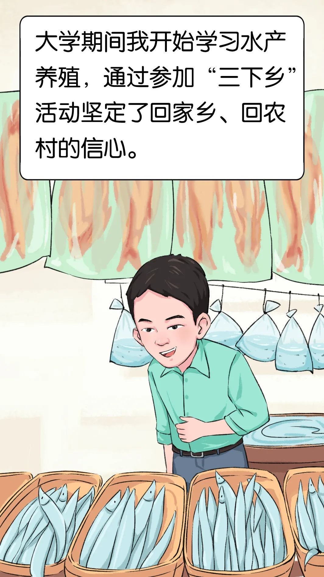 扎进田间地头、穿梭于公司、养殖基地和超市,来往于各大科研院所、奔波于各大水产交易市场,解决一个个技术、管理、销售上的难题,是“90后”新农民林俊的日常生活。2015年,林俊还在广州体育学院读书时,就已开始学习水产养殖。在大学期间,他主动参加“三下乡”调研,了解到佛山现代农业发展有很大的空间和发展前景,于是坚定了回家乡、回农村的信心。