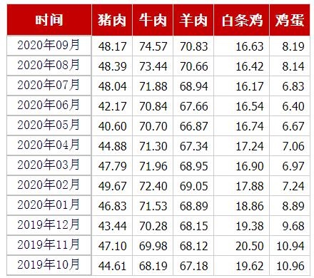 从国家统计局公布的数据来看,食品价格上升依然是拉动CPI上涨的主要因素。以肉蛋价格为例,农业农村部的数据显示,猪肉自今年5月份以来,价格又开始一轮涨势,与此同时,牛肉、羊肉、鸡蛋等食品价格近几个月来也基本呈现持续上涨态势。
