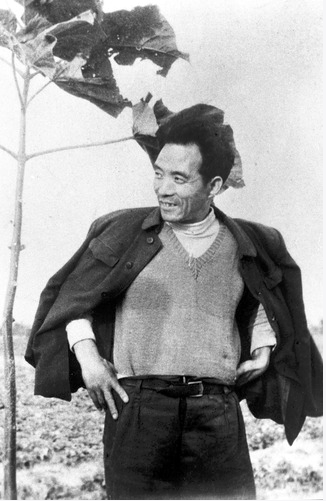 焦裕禄当年满怀豪情地在泡桐树前留影。新华社资料图片