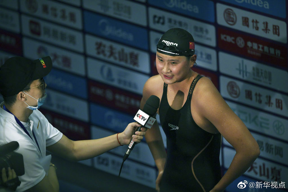 【王简嘉禾破女子1500米自由泳亚洲纪录】9月27日在青岛举行的2020全国游泳冠军赛暨东京奥运会达标赛女子1500米自由泳预赛中,辽宁浩沙队选手王简嘉禾以15分45秒59的成绩获得第一名,并打破亚洲纪录。