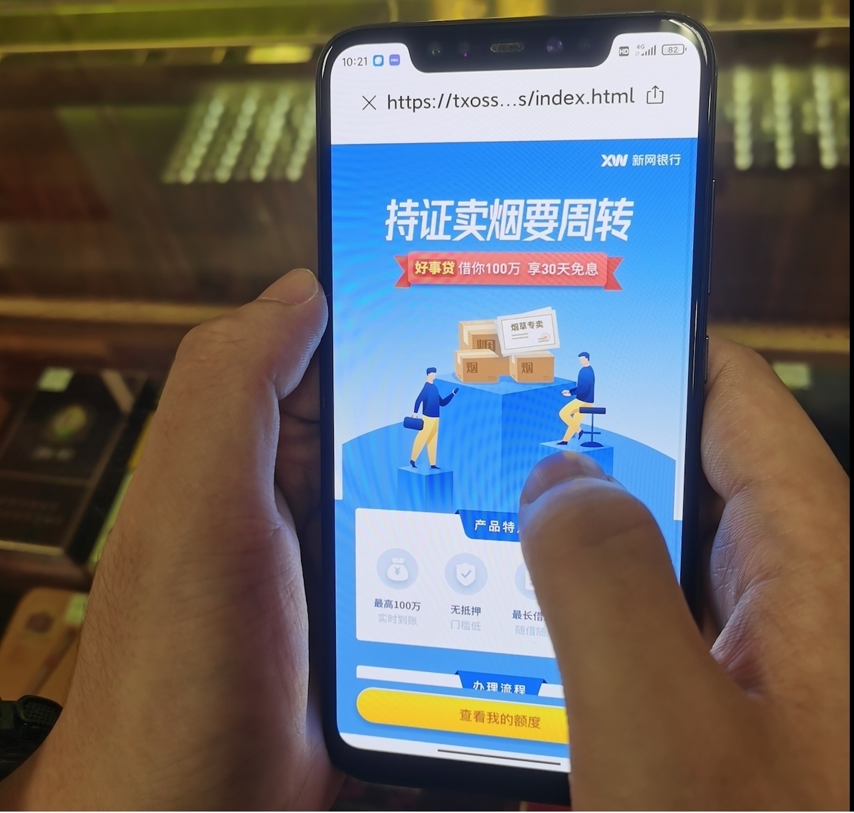 9月25日,在深圳经营一家烟酒杂货铺的陈先生通过短信对话框拿到了授信。“办理流程很便捷,信息内容也很丰富,而且审批速度很快。”陈先生在短信对话框点开新网银行“好事贷”页面下的“烟草商户专享”产品,通过指引,上传“烟草专卖零售许可证”,随后进入了申请授信的环节,整个过程在2分钟内即可完成。