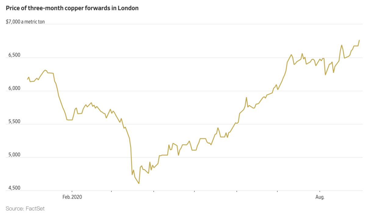 △伦敦金属交易所铜价变化趋势(图表来源:《华尔街日报》)