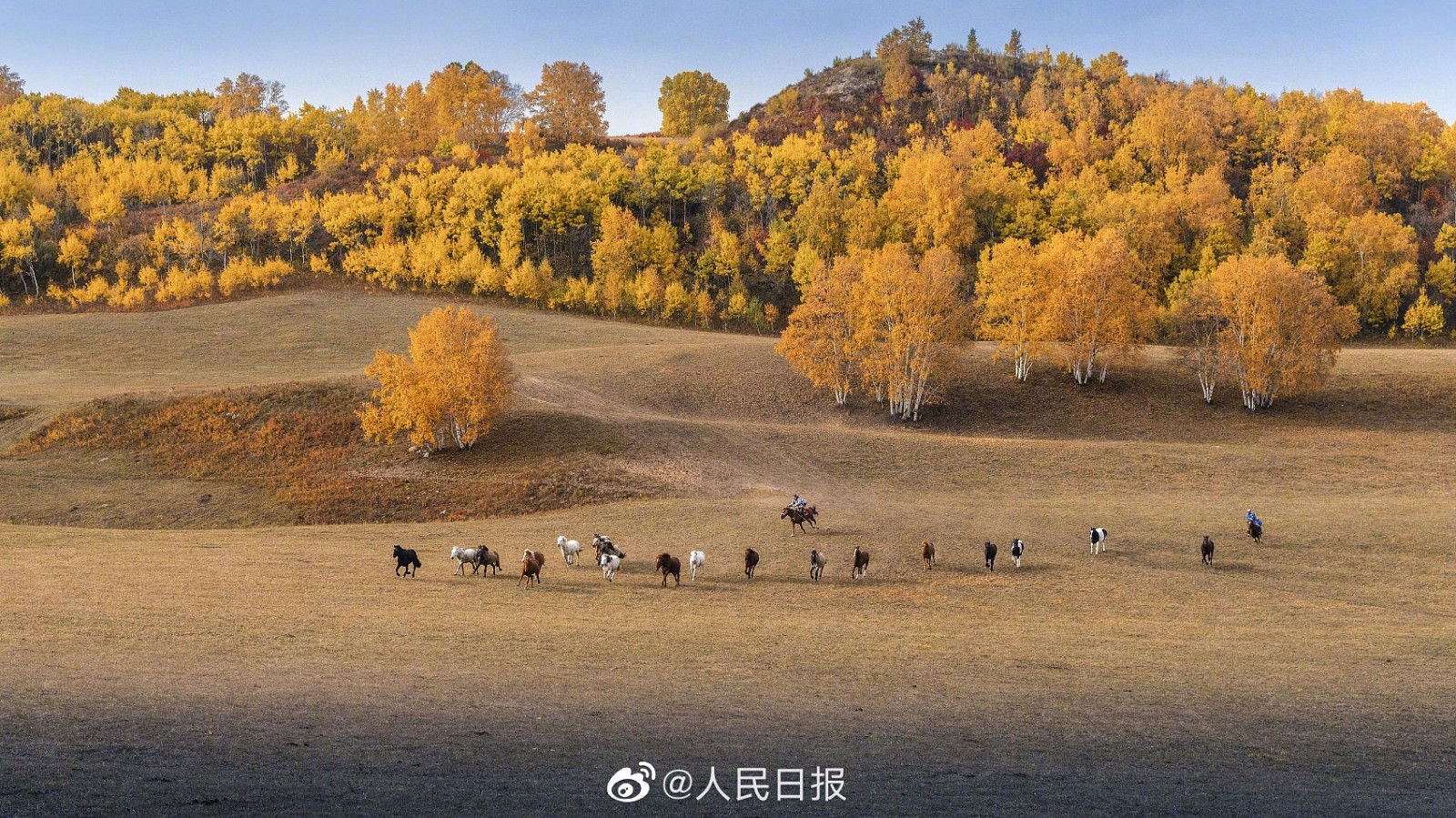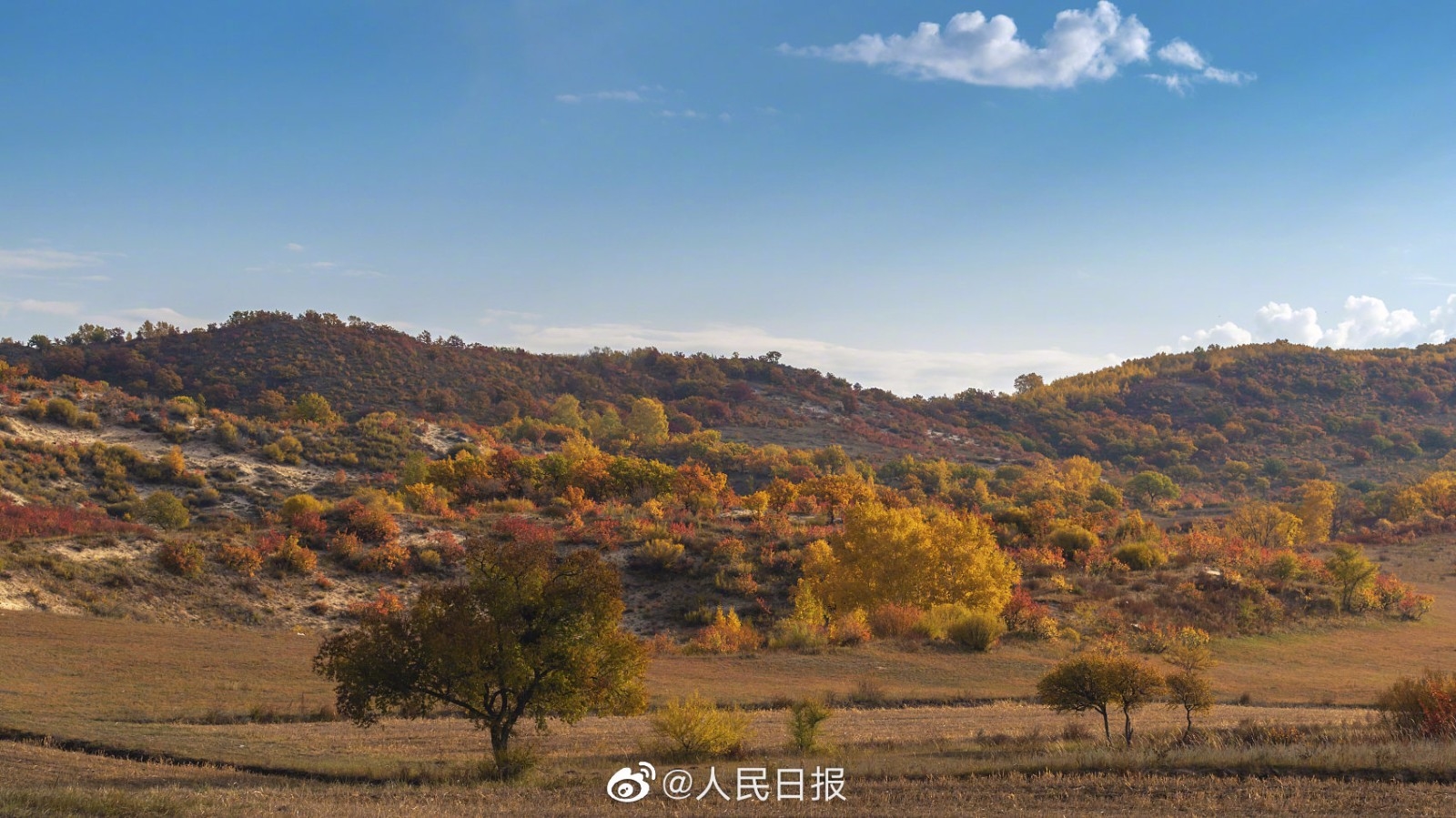 9月末,内蒙古赤峰市乌兰布统秋日景色迷人,坝上草原如油画般。大草原的秋天什么样?快来看看吧!(来源:人民日报微博)