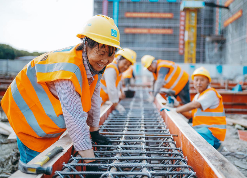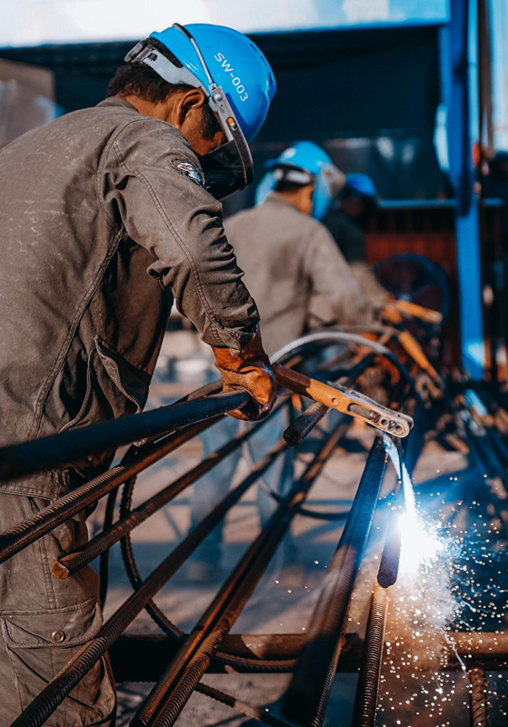 无独有偶,相隔20公里的中建三局苏州绿岸12号地块项目,由于26栋住宅楼同时施工,工期紧、体量大,双节来临之际,正值工程主体全面冲出正负零的关键节点。工友们仍在争分夺秒地工作,电焊、绑钢筋、支模板等作业井井有条。
