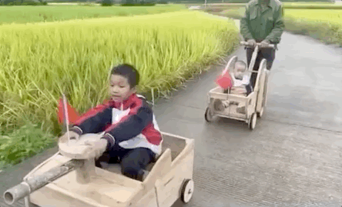 近日,福建龙岩。69岁的木工爷爷李石水给孙子制作了一辆玩具“礼炮车”,引得网友实名羡慕。视频中,8岁的大孙子坐“礼炮车”开路,李爷爷在后面推着2岁的小孙子。两辆车上都特别插了国旗,画面十分有爱。详情>>>