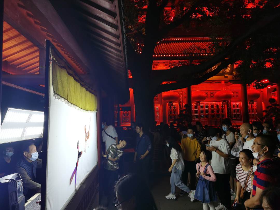 黄鹤楼夜间游有不少游客互动区域。比如,在黄鹤楼公园南门处设置服装体验区,多款汉服、旗袍和长衫供游客选择。在诗碑廊安装了泡泡机,源源不断的白色泡泡非常适合打卡拍照;在西爽门附近设置了供游客参与灯光投影互动的装置。主楼前广场两边还有专为夜晚的黄鹤楼设计的文创周边,让来到黄鹤楼的观众,也能带走“黄鹤楼”。同时,现场还能欣赏到拉洋片、皮影戏等非遗演出。夜晚的黄鹤楼,也拥有着别样的活力与精彩。