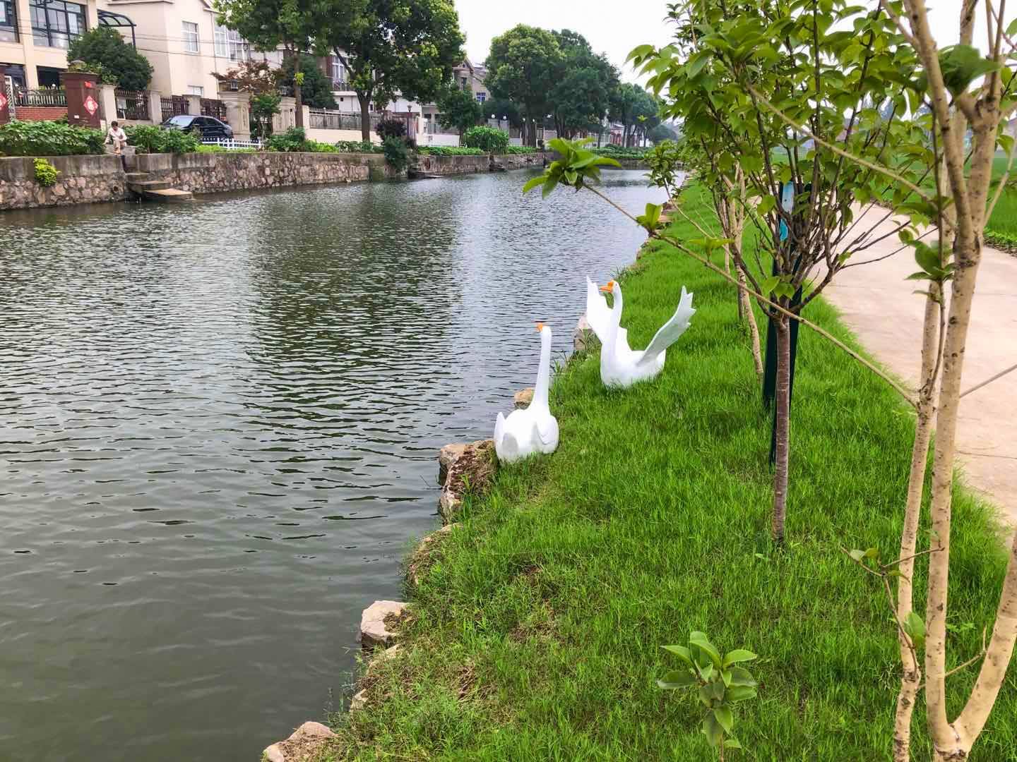 新安村12组门口河如今水清岸绿,两只大白鹅更是栩栩如生,一派怡人景象