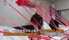 近日,有网友在火车上拍下了暖心一幕。视频中,父亲用绳子搭建了两个安全防护网,将上铺的双胞胎女儿保护了起来,防止她们翻身时发生意外。网友:满满的爱!详情>>>