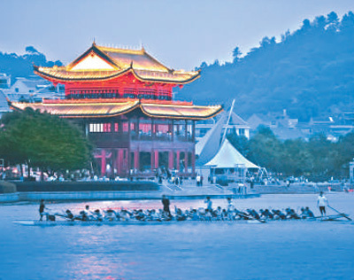 塘河早已与温州人的日常生活须臾不离。这当中,最具仪式感的事情应是每年端午去看龙舟竞渡。端午时节,塘河的每条支流几乎都有划龙舟活动。我一般选择去会昌湖的会昌阁上观看龙舟竞渡。会昌阁也叫龙船阁,雕梁画栋、飞檐翘角,伫立于会昌湖畔。其前身是“思远楼”,宋代温州知州刘述建此楼,为的是供人们登楼赏湖光山色观龙舟竞渡。元至正年间,思远楼遭飓风摧毁。今人建会昌阁,是为了继承一代名楼的历史遗风。我在此观看龙舟竞渡,便是被那一缕古典的韵味所吸引。