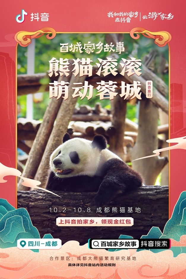10月2日起,抖音在成都大熊猫繁育研究基地开启了趣味非凡的慢直播,在节假日期间通过直播的形式让线上百万用户围观熊猫的日常生活,实现“云撸熊猫”。