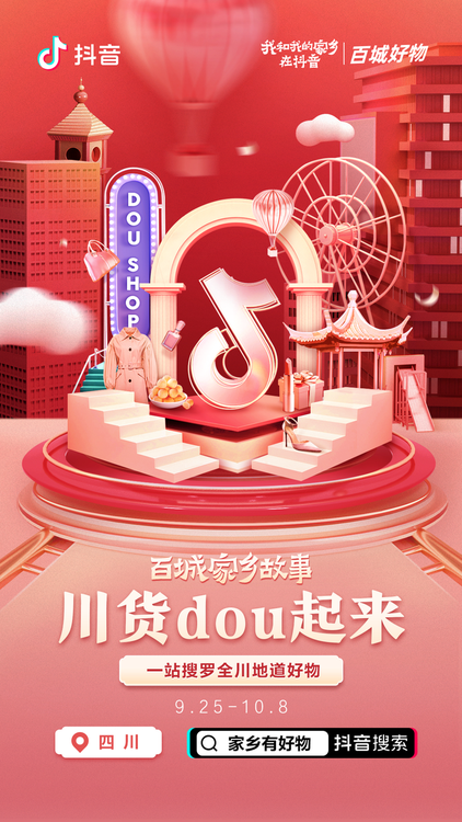 国庆期间,抖音持续聚焦四川优势生鲜美食产业带,并首次将川酒、熊猫等系列四川龙头品牌,特色产品集结,开启了“家乡有好物—川货dou起来”直播电商活动。