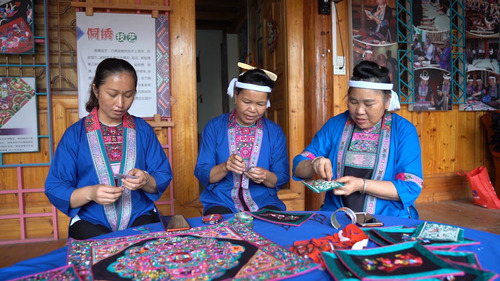 这些年,在广西柳州市三江侗族自治县同乐苗族乡同乐村,侗绣技艺传承人杨甜的家最特别,也最热闹。