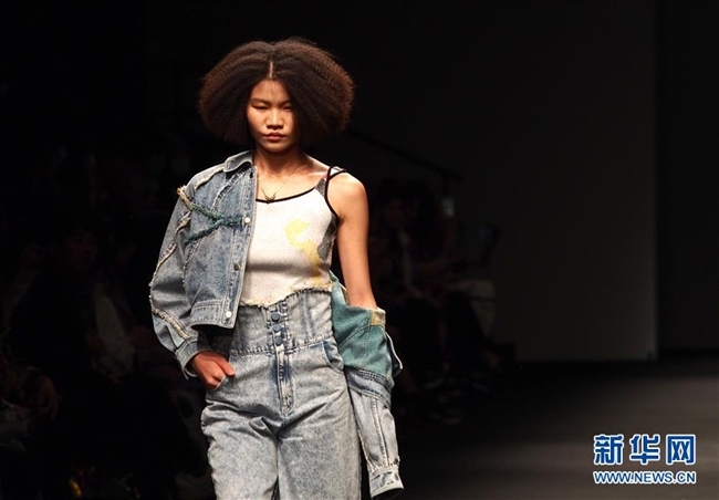 10月9日,模特在上海新天地湖畔秀场上展示MINNANHUI新款时装。 当日,2021春夏上海时装周在上海新天地等秀场继续展示各类时装。 新华社记者 任珑 摄