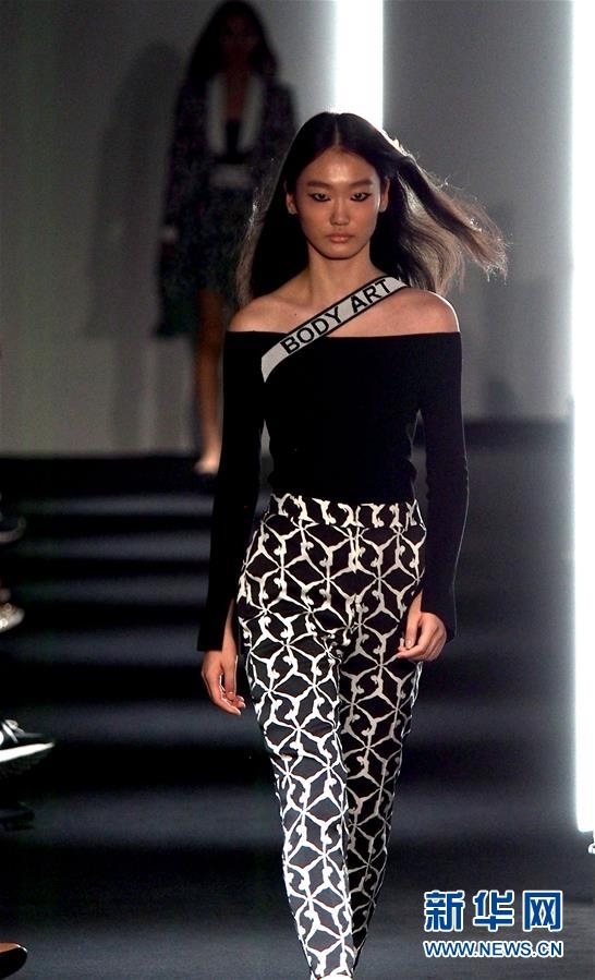 10月9日,模特在上海新天地湖畔秀场上展示Yes By Yesir新款时装。 当日,2021春夏上海时装周在上海新天地等秀场继续展示各类时装。 新华社记者 任珑 摄