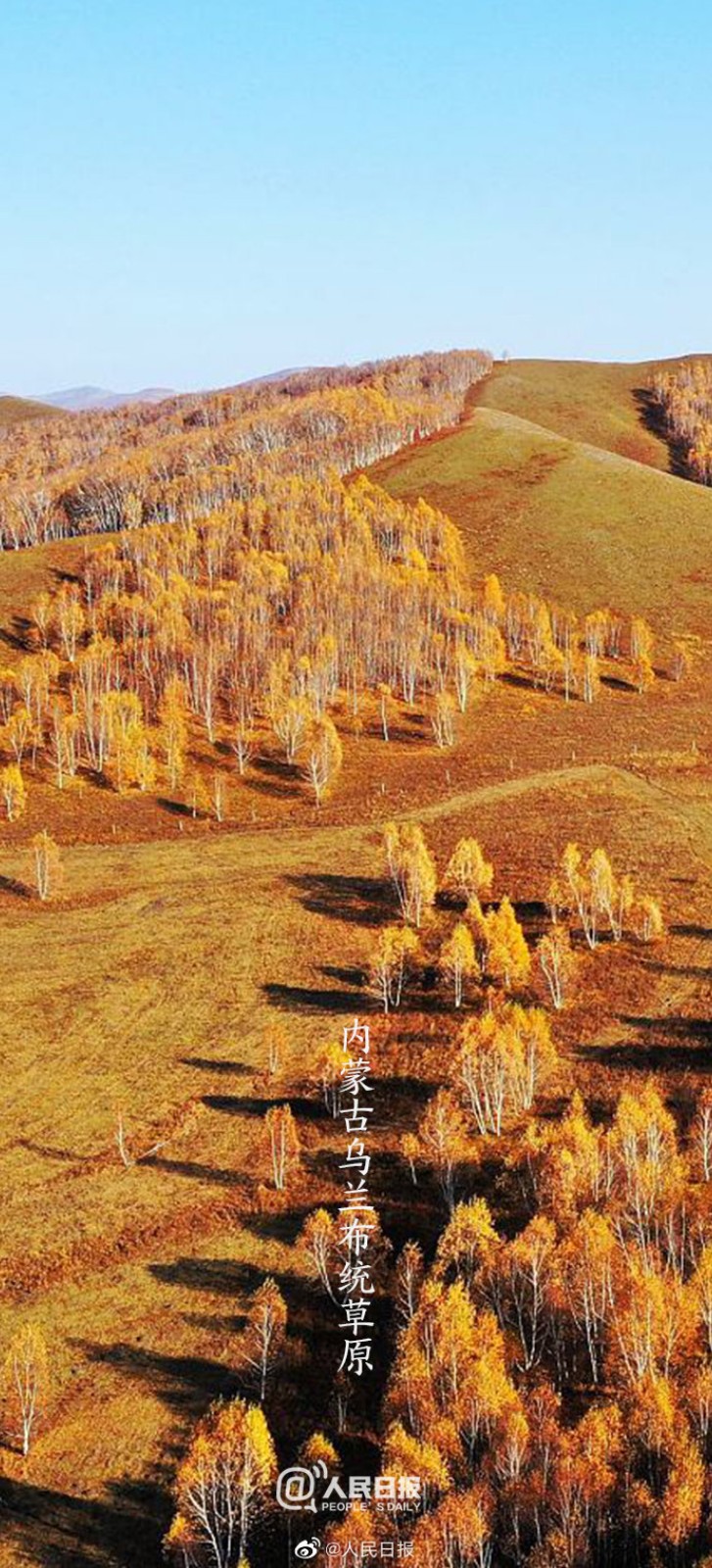 金秋十月来临,各地秋景惹人醉。内蒙古乌兰布统草原、新疆塔里木河湿地、甘肃张掖七彩丹霞景区、云南大理喜洲镇金色稻田……秋天可以有多美?一起感受。(来自:人民日报微博)