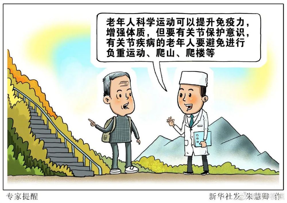 专家提示,骨关节炎患者进行适量运动治疗可减轻疼痛,改善躯体功能,提高生活质量和步行能力,并降低跌倒风险。