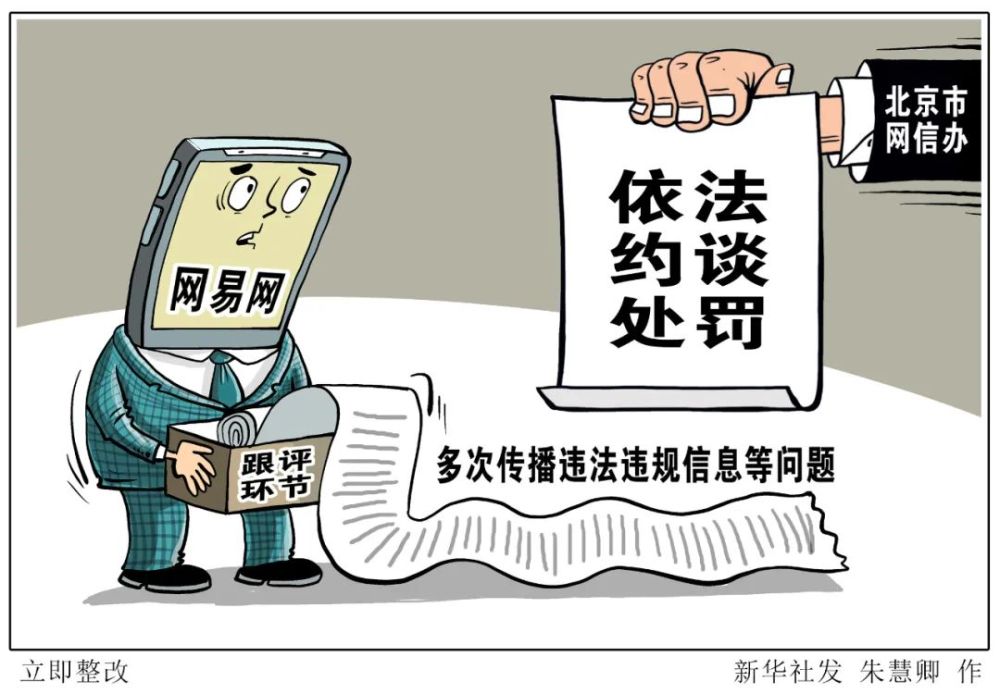 北京网信办近日针对“网易新闻”App、网易网“网易新闻”频道、“网易号”跟评环节多次传播违法违规信息等问题,严肃约谈网易网负责人。