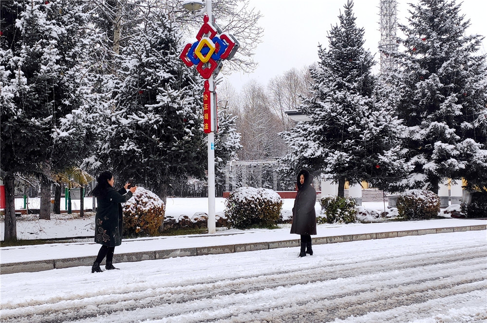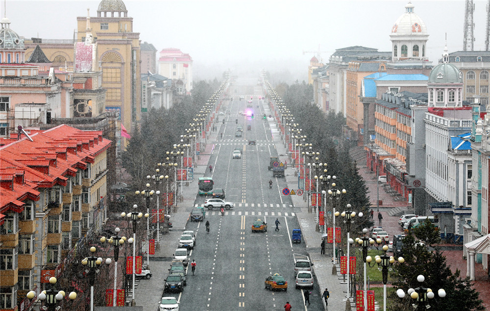 连日来,漠河市气温持续走低,最低温度在零下5摄氏度左右徘徊。11日一早,漠河市迎来入秋后的首场降雪,相比去年,首场雪足足“迟到”了26天。雪花飘飘洒洒从天而降,整个漠河市都笼罩在白色的雪幕中,行人们换上了厚厚的冬装,私家车也纷纷换上了雪地胎。