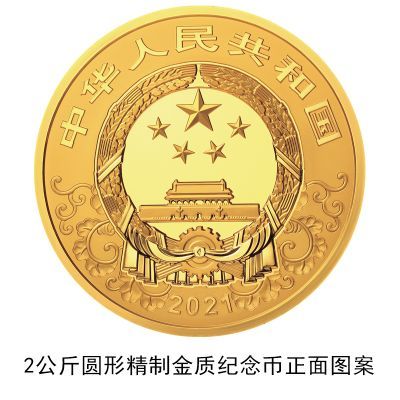 (二)2公斤圆形金质纪念币为精制币,含纯金2公斤,直径110毫米,面额20000元,成色99.9%,最大发行量50枚。