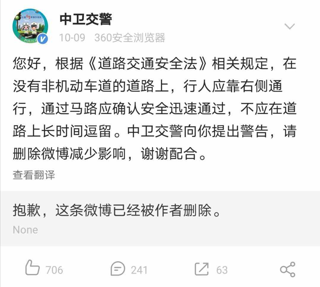 十一长假期间,演员贾青在被网友誉为“中国版66号公路”的路段拍照,被宁夏中卫交警警告并删除微博,引发外界热议。