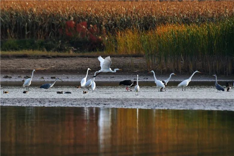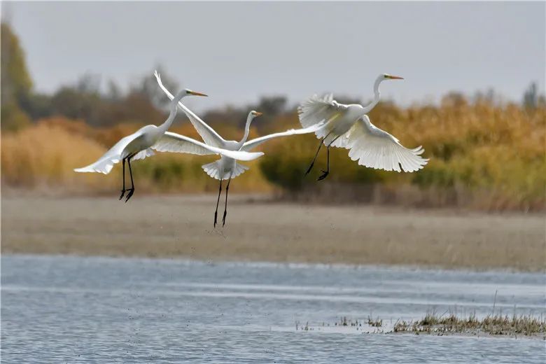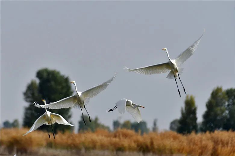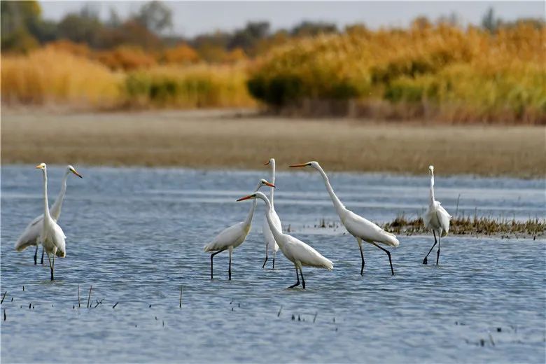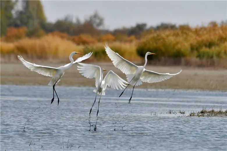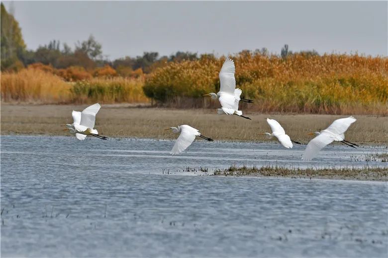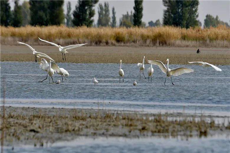 近日,张掖黑河湿地国家级自然保护区高台段的马尾湖库区,大批南迁的白鹭在此停歇,它们时而翩翩起舞,时而水中嬉戏,时而盘旋觅食,给沉寂的黑河湿地平添了无限生机与活力。