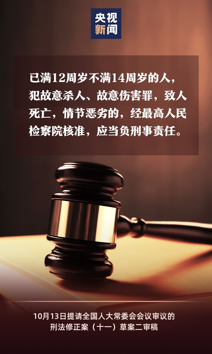 草案规定,拟在特定情形下,经特别程序,对法定最低刑事责任年龄作个别下调。已满12周岁不满14周岁的人,犯故意杀人、故意伤害罪,致人死亡,情节恶劣的,经最高人民检察院核准,应当负刑事责任。