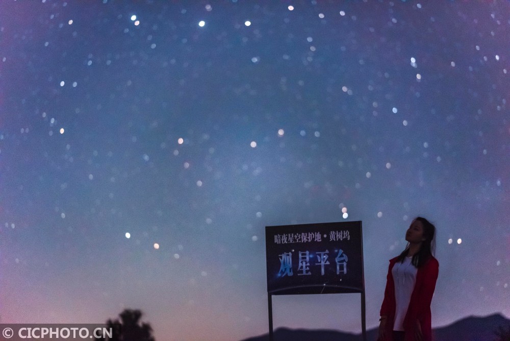 ↑2020年10月9日,在江西省上饶市横峰县葛源镇黄树坞村,爱好者在拍摄美丽的星空。CICPHOTO/杨阳 摄