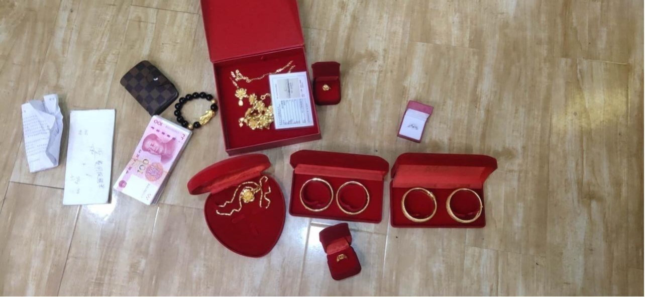 警方扣押的部分现金、黄金首饰