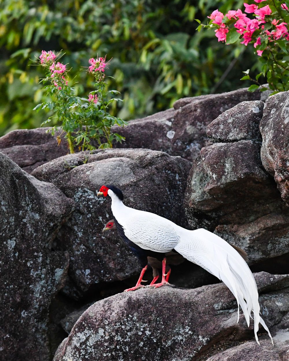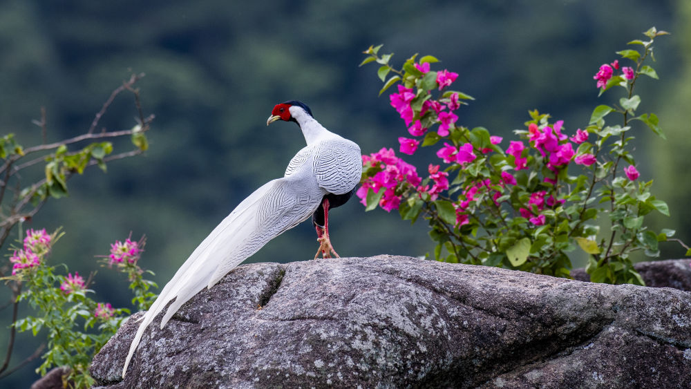 ↑10月14日,在南靖县鹅仙洞国家级自然保护区,一只白鹇在岩石上休憩。