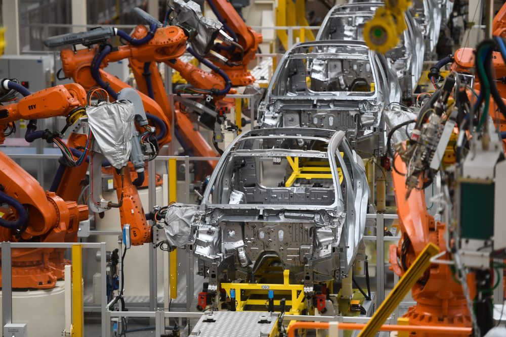 在浙江省宁波市北仑区吉利汽车春晓制造基地拍摄的自动化焊接线。记者黄宗治摄