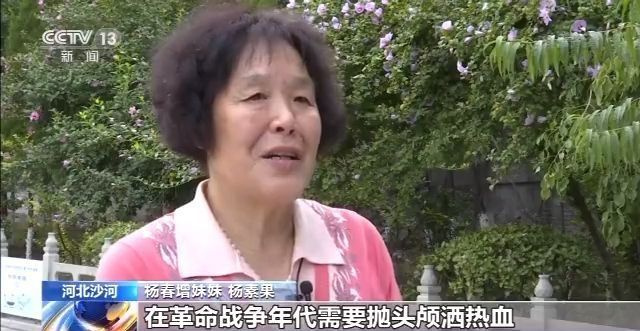 杨春增妹妹 杨素果:在革命战争年代需要抛头颅洒热血,在和平年代,需要爱岗敬业做好自己的本职工作。我们的孩子听着英雄的故事长大,在各自的工作单位,努力奋斗作出自己的贡献,这就是新时代烈士精神的传承。