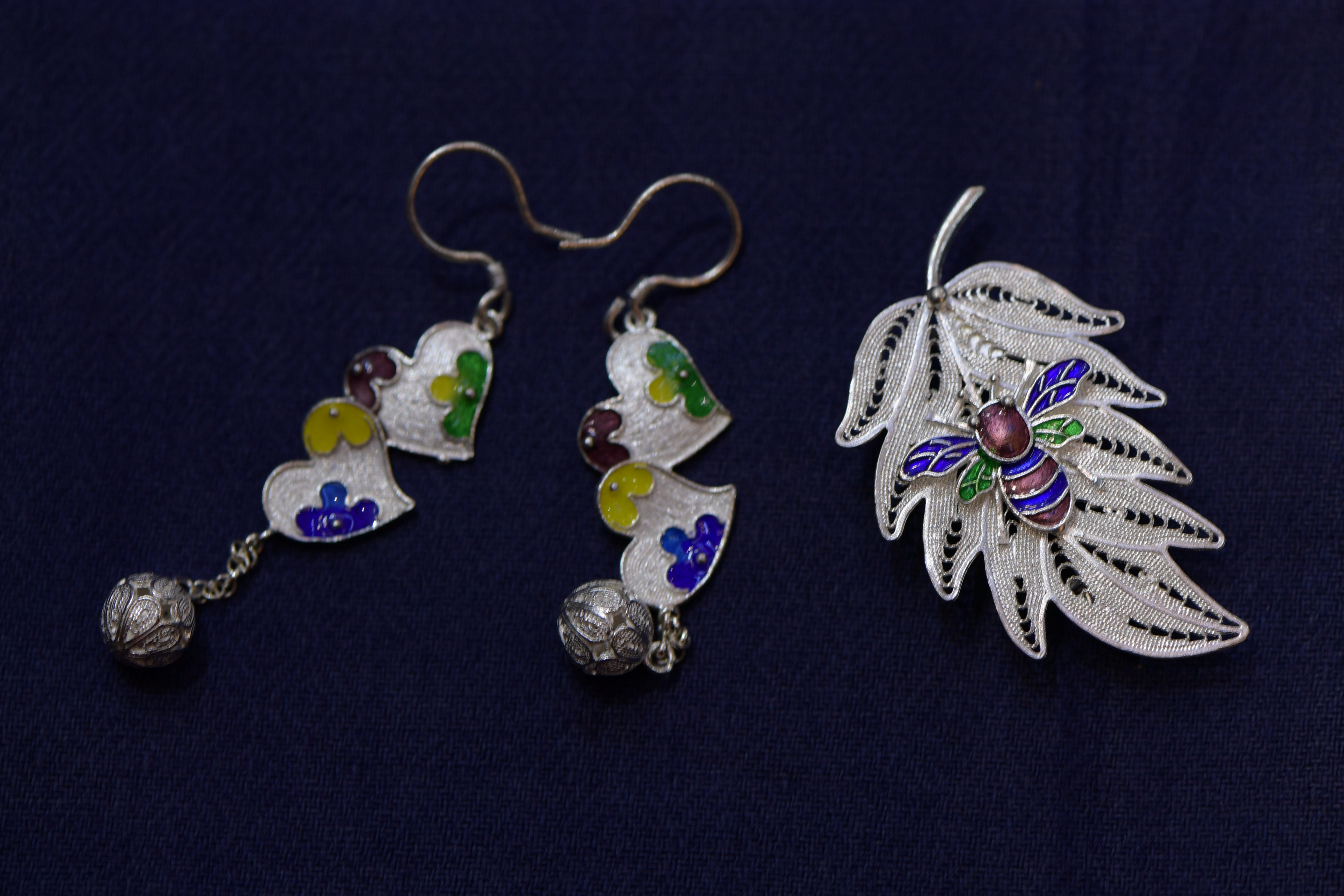 ↑10月17日在中国丹寨非遗周活动上拍摄的展出的银饰工艺品。新华社记者 杨楹 摄