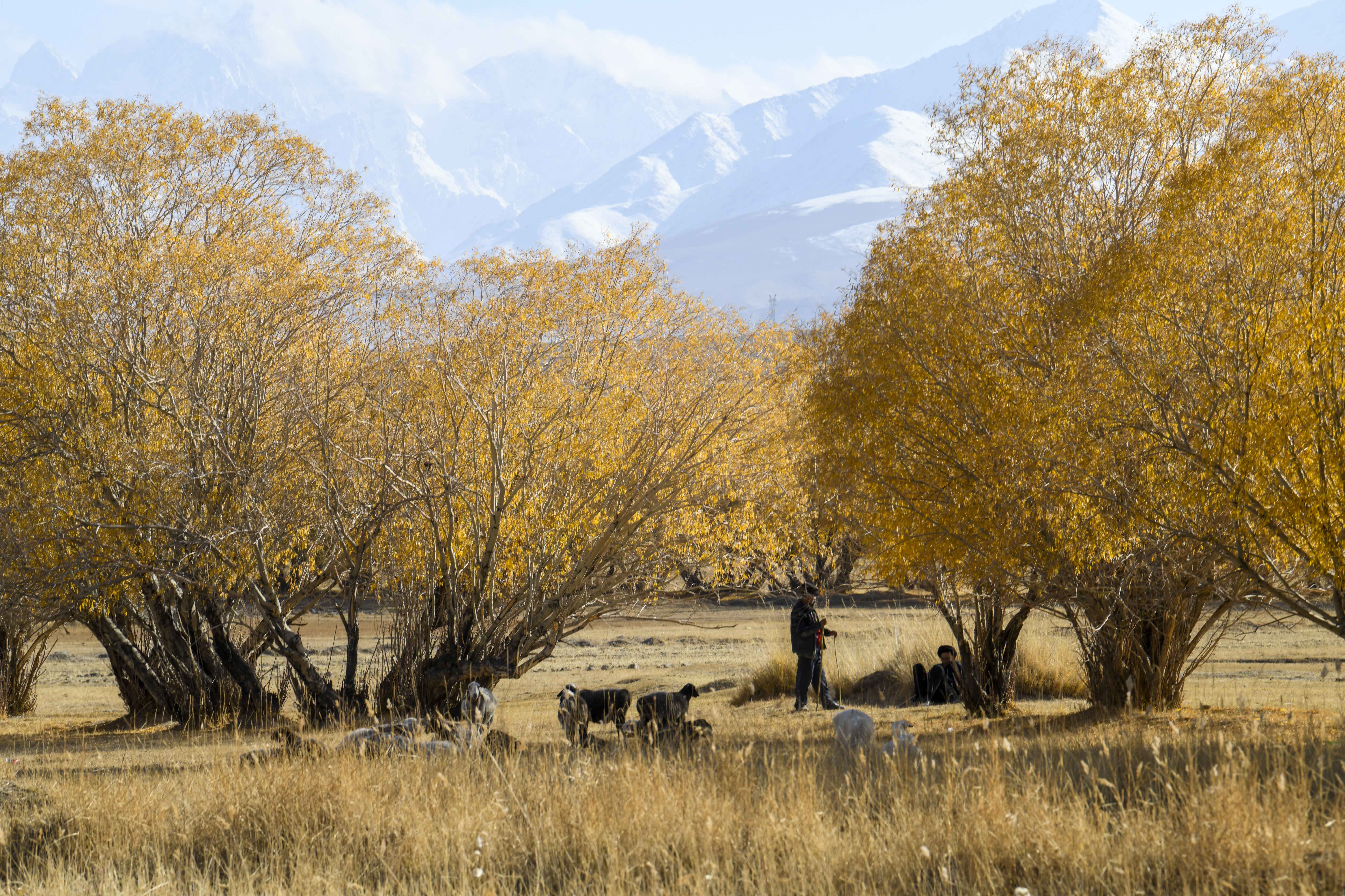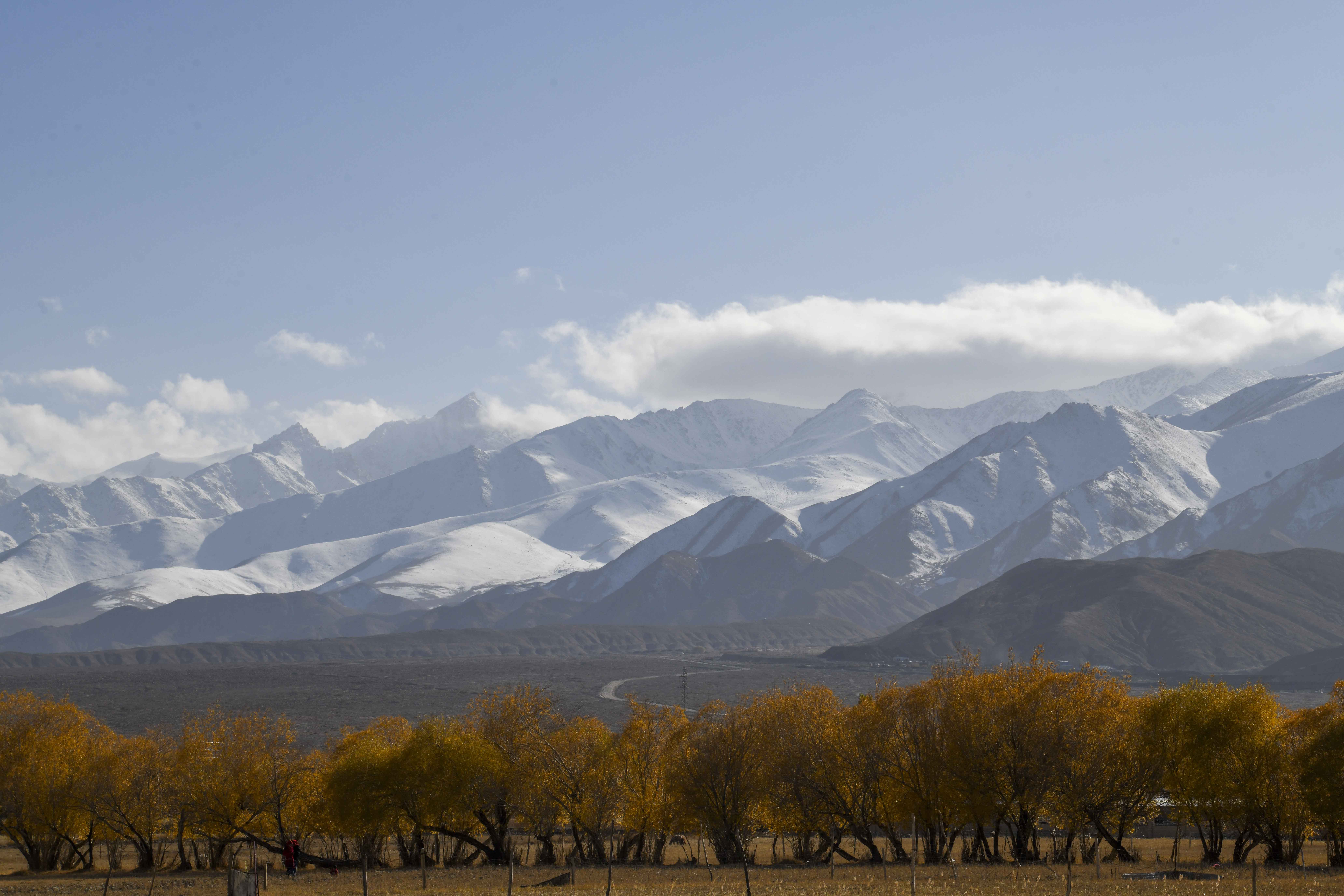 金秋十月,位于帕米尔高原的新疆塔什库尔干塔吉克自治县秋意正浓,蓝天、雪山和金黄色的胡杨把帕米尔高原描绘成一幅美丽画卷,吸引游客前来领略高原秋意。